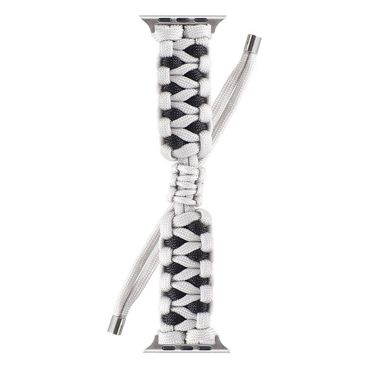 The Drawstring Closure Adjustable Braided Nylon Rope Wrist Strap Watch Band for Apple Watch is a specially designed, sturdy, and stylish accessory that enhances the elegance, vintage appeal, and fashion-forward aesthetics of your Apple Watch. Featuring a handmade craft integrated with modern technology, the elaborate woven strap ensures durability while making a bold statement. Its drawstring closure allows for easy adjustment to fit a wide range of wrist circumferences. Moreover, it is easy to attach—simply slide the stainless-steel watch adapters into place and click firmly. With the option of multiple colors to choose from, you can find the perfect match for any outfit. The band measures 180mm in length, suitable for wrist circumferences of 160-220mm, and has a width of 22mm, offering a comfortable and secure fit due to its quality nylon material.