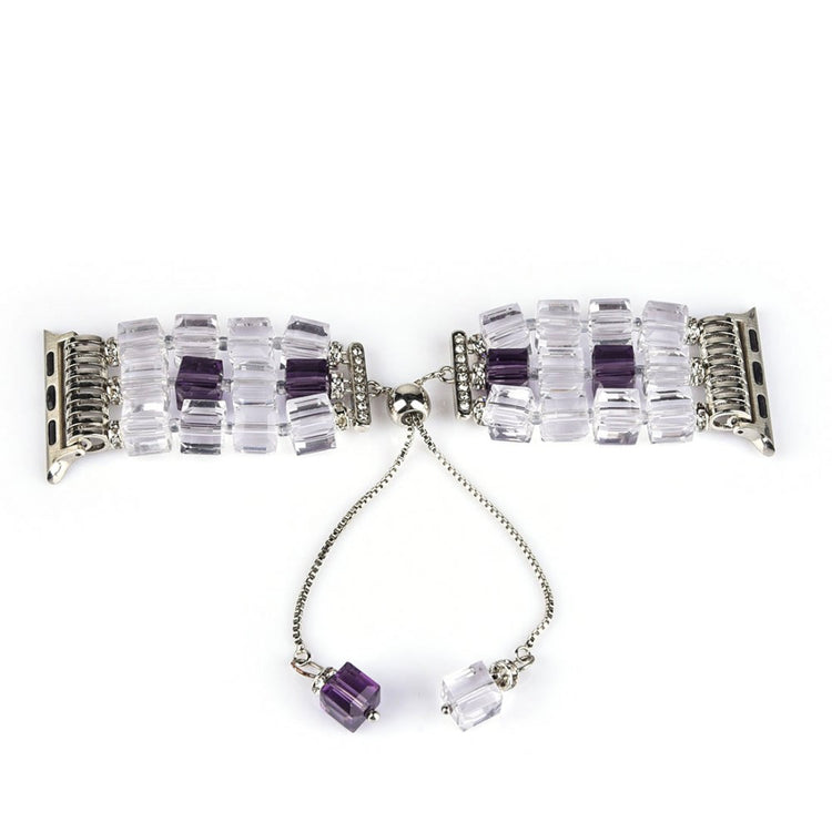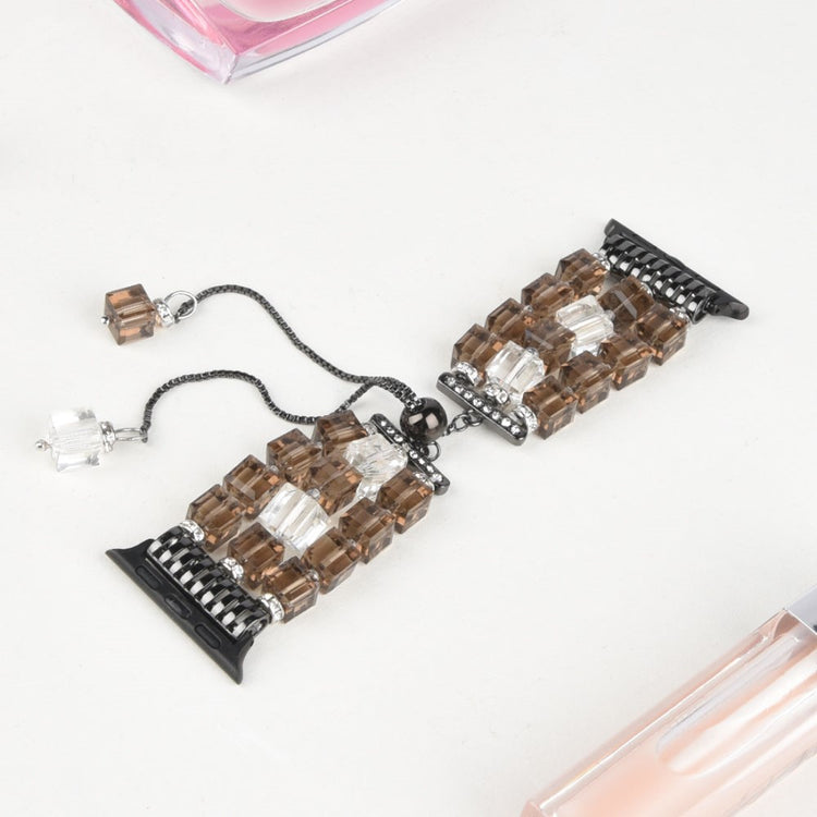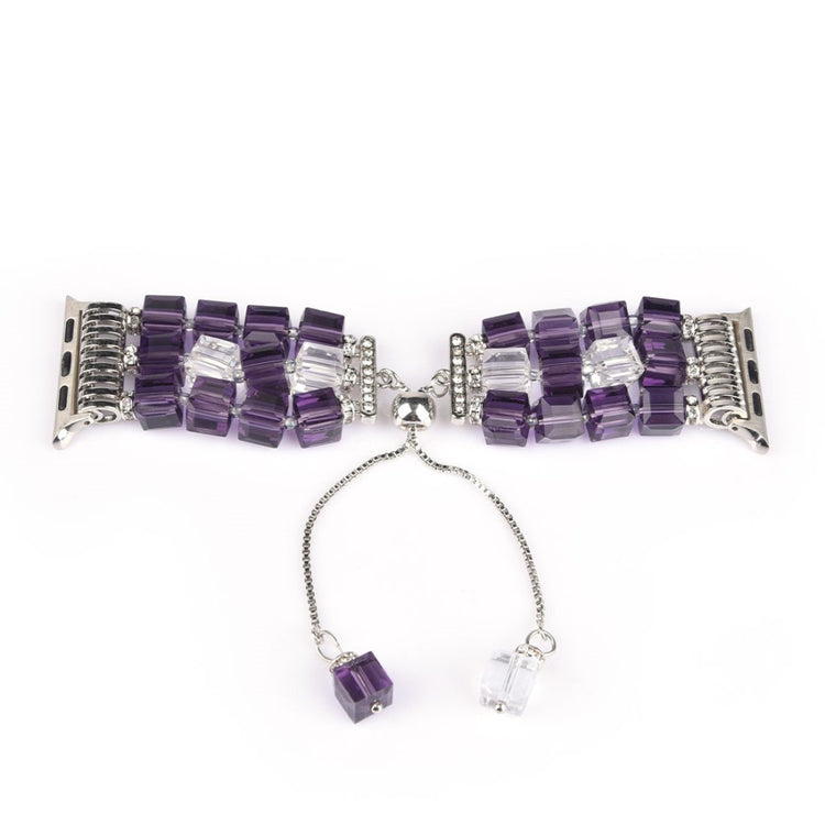 The Faux Crystal Blocks Smart Watch Band Strap Bracelet for Apple Watch is made from high-quality material with detailed workmanship, making it comfortable to wear. This stylish watch band features three rows of faux crystals and a chain dangle for a delicate look, serving as an ideal replacement for old or broken straps. It comes in multiple colors, is easy to install or remove, and its specifications include a length of 155mm, a watch lug width of 22mm, and a wrist circumference of 170-200mm.