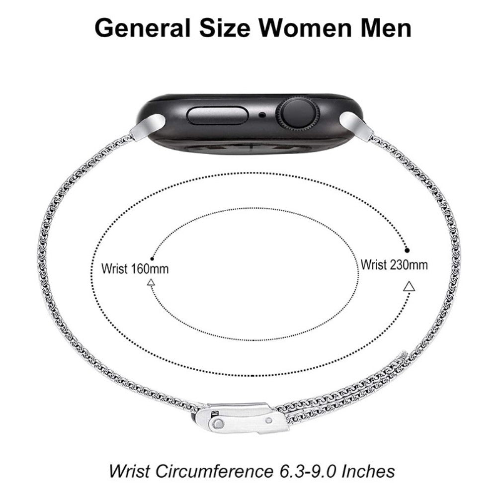 Enhance your Apple Watch with this high-quality stainless steel Milanese band, designed for a comfortable fit. The strap is adjustable to suit wrist sizes between 160-230mm (6.3-9.0 inches) and features a breathable mesh design to prevent sweating. This replacement strap is perfect for updating your old or broken band.
