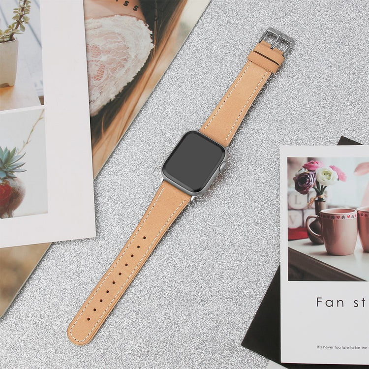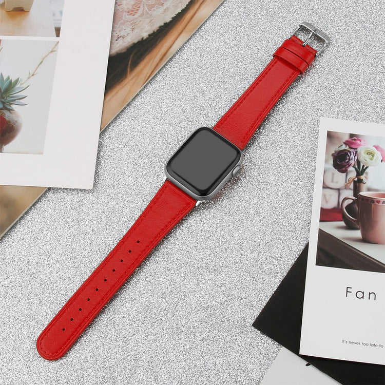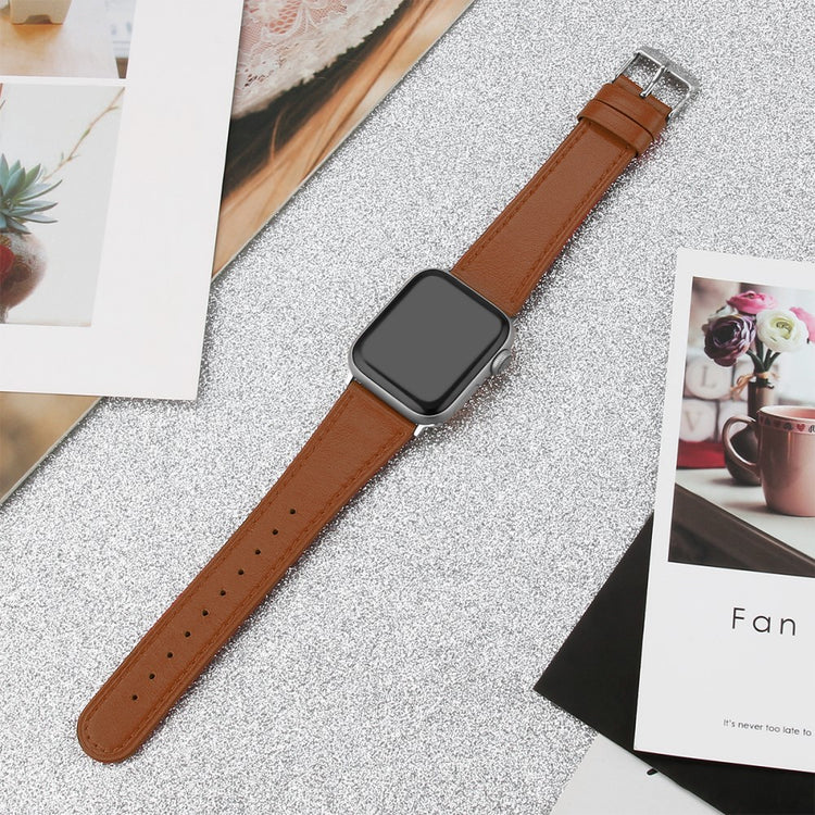 This Top Layer Cowhide Genuine Leather Watch Strap Replacement Band for Apple Watch Ultra 49mm / Ultra 2 49mm / Series 9 45mm / SE (2023) 44mm / Series 8 45mm / 7 45mm / 6 / 5 / 4 / SE 44mm / SE (2022) 44mm / 3 / 2 / 1 42mm is an excellent choice for anyone looking to elevate their watch's style and functionality. Made of top layer cowhide genuine leather, it offers both durability and comfort for continuous wear. The size can be easily adjusted to fit any wrist within the range of 5.5-8.1 inches, ensuring a perfect fit for everyone. This strap is an ideal replacement for your old or broken one, making your watch look as good as new. Additionally, it is suitable for a variety of settings, including work, dates, travel, and daily life, offering versatility and elegance in one package. Weighing only 17g, it is lightweight and won't add extra bulk to your wrist, enhancing your overall wearing experience.