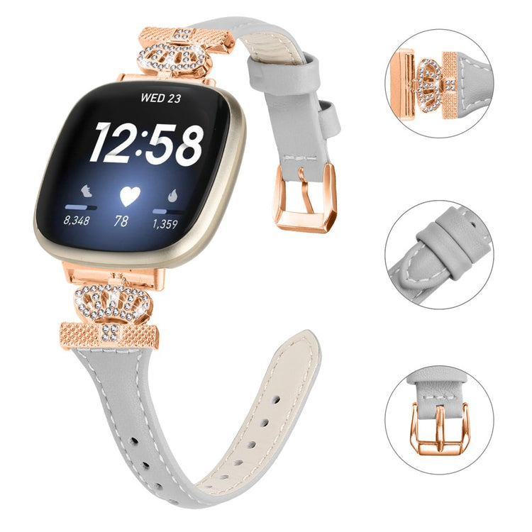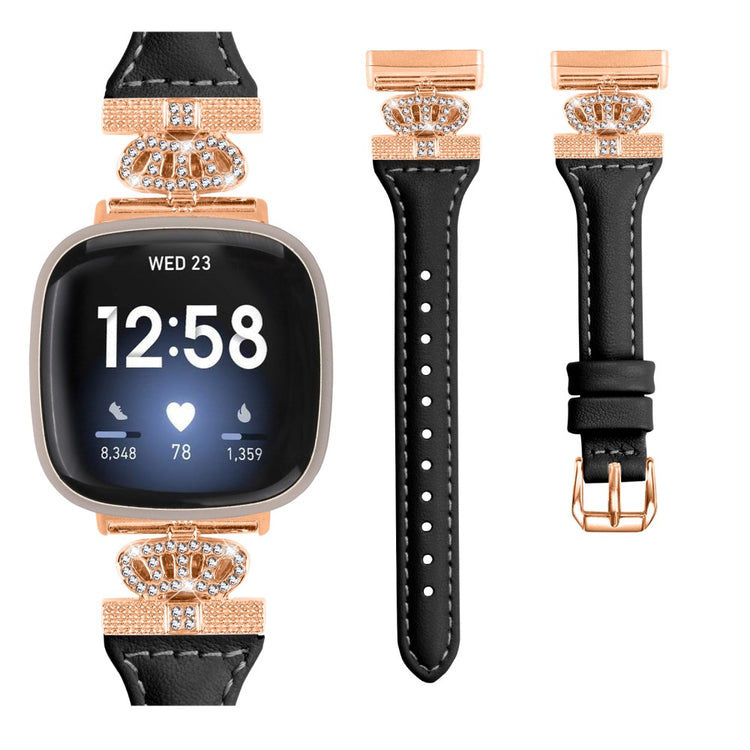 Upgrade your smartwatch experience with the Fitbit Versa 3 / 4 / Sense / Sense 2 Rose Gold Buckle Watch Strap Crown Rhinestone Band. Made from high-quality genuine cowhide leather, this strap provides unmatched comfort for all-day wear. Its versatile design effortlessly complements a variety of daily outfits, ensuring you always look stylish. The elegant crown-shape connector and shiny rhinestone decor enhance the beauty of your smartwatch, making it not just a functional accessory, but also a fashionable one. With a multiple-hole design, adjusting the size for the perfect fit is a breeze, and the robust stainless steel buckle adds to the strap's durability, ensuring it withstands daily use. This makes it an ideal replacement for your old or broken strap, perfect for every occasion, whether at work, during leisure activities, or in everyday settings for both women and men.