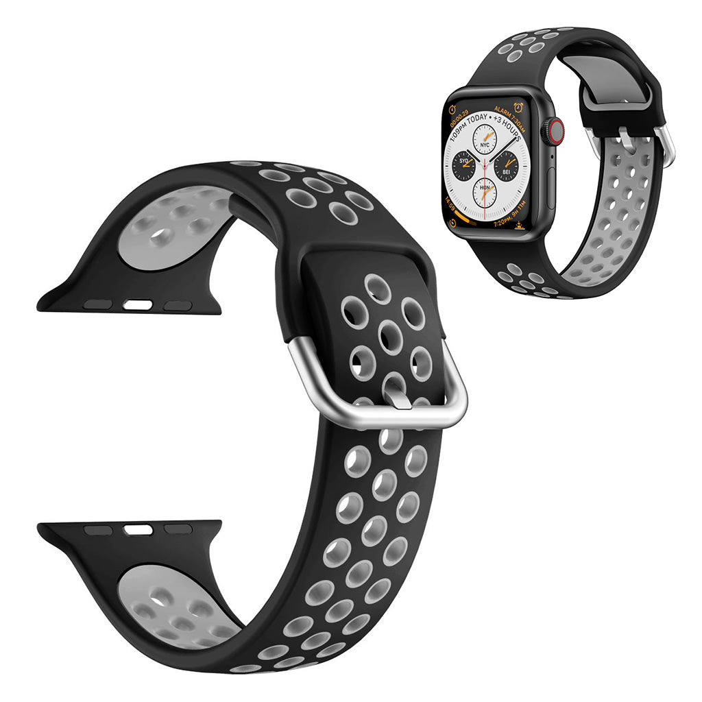 This dual color silicone watch strap is designed for various Apple Watch Series models, making it a versatile replacement band. Made from premium silicone, it offers comfort with moderate softness and features a multiple holes design for heat dissipation and easy adjustment to fit your wrist size. Installation and removal are straightforward, making it an ideal choice for replacing old or broken watch straps.